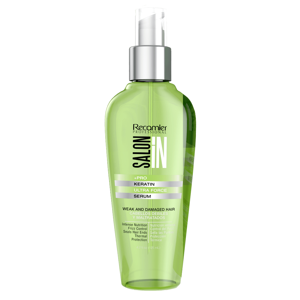 Serum keratin ultra force de Salon In, recupera la hidratación y suavidad del cabello. Su combinación de tres ingredientes emolientes: Aceites de argán macadamia y pracaxi facilitan el peinado del cabello seco o húmedo; aumenta el brillo brinda profunda nutrición y protección térmica a la fibra capilar. 120ml.